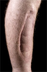 Trauma scarring to right lower leg